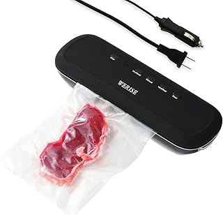 WERISE 真空シーラー 自動フードシーラーマシン 食品セーバー/スターターキット用 車使用 バッグ固定 LEDインジケーターライト 内蔵カット ドライ&モイストフードモード コンパクトデザイン (ブラック)